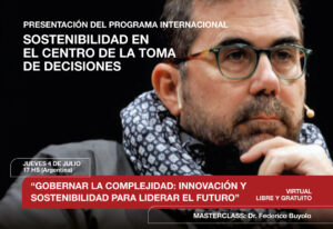 El próximo 4 de julio a las 17 horas se dictará libre y gratuita una masterclass a cargo del Dr. Federico Buyolo: “Gobernar la complejidad: Innovación y sostenibilidad para liderar el futuro”. La misma es organizada por la Fundación Instituto